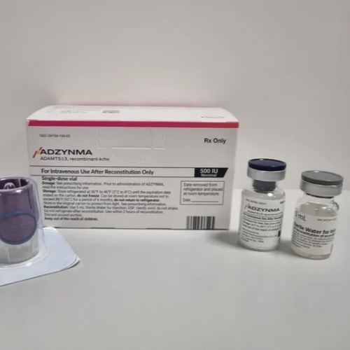 如今,首个针对cTTP病因的酶替代疗法已经上市。药物名称为Adzynma,由武田公司研发。该药物为重组ADAMTS13(rADAMTS13),即通过生物工程技术制备的与人体天然ADAMTS13结构和功能相似的酶。它通过静脉注射给药,直接补充体内缺乏的酶,从疾病根源入手进行治疗,而非仅仅依赖血浆替代。