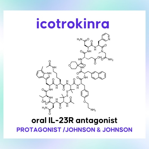 Icotrokinra是一种处于临床开发阶段的药物,其作用靶点为:IL-23受体拮抗剂。