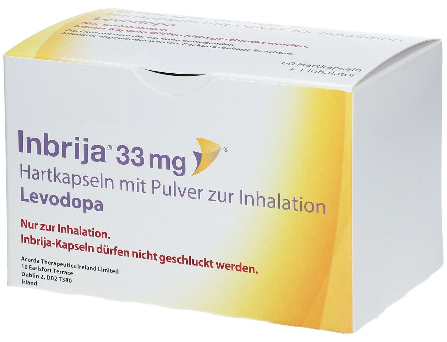 Inbrija以每粒42毫克左旋多巴的吸入胶囊形式提供,但每剂实际释放左旋多巴仅为33毫克。主要用于缓解“关期”期间的症状。