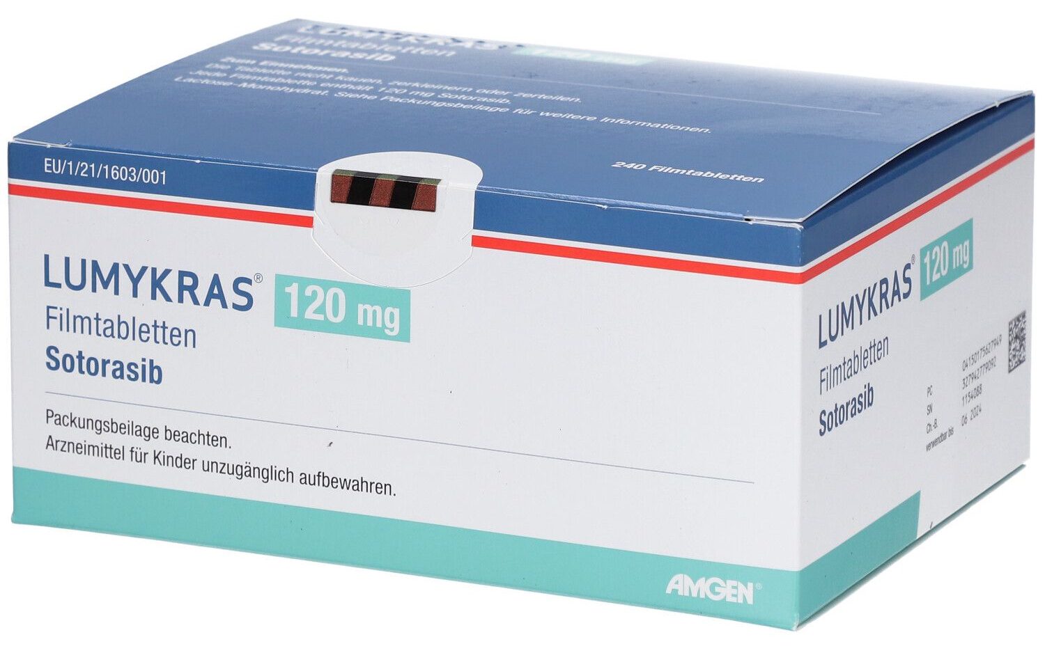 自2022年2月15日起,Lumykras(索托拉西布Sotorasib)作为首款用于治疗具有KRAS G12C突变的晚期非小细胞肺癌(NSCLC)的药物,在德国市场上市。Sotorasib是一种低分子量、不可逆的KRAS G12C突变蛋白抑制剂。